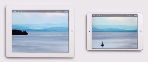 Líkt og í fyrstu auglýsingunni þá deilir iPad mini skjánum ásamt stóra bróður (eða systur).