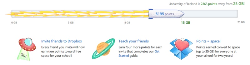 Skýþjónustan Dropbox, sem gerir þér kleift að vista gögnin þín með tryggum hætti á netinu, er nú með svokallað Space Race í gangi fyrir háskóla út um allan heim.